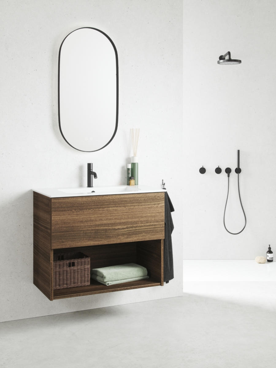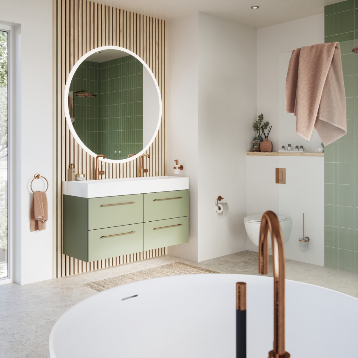 Eucalyptus groen is een matte neutrale groen met grijze tinten. Voor een frisse en orginele kleur in de badkamer. Ook heel goed te combineren met diverse houtstructuren voor een natuurlijke en elegante uitstraling.