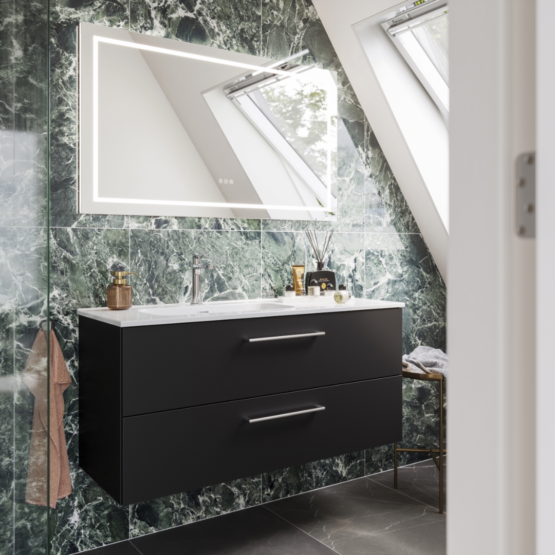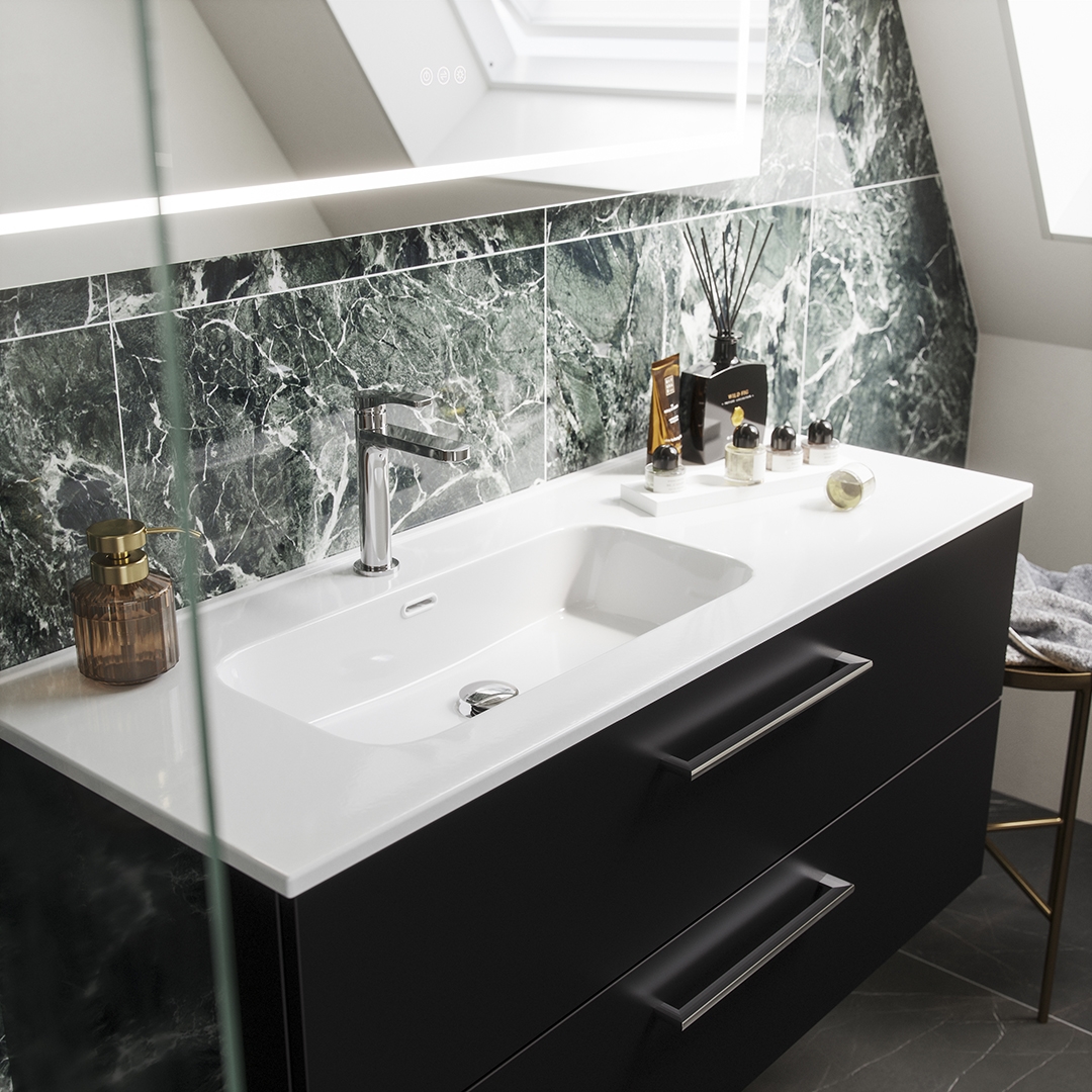 Het Third Edition designmeubel is voorzien van een scherpe prijsstelling. Het dunne keramisch wastafelblad heeft een fijne bladlijn en is ook mogelijk in een asymmetrische variant.