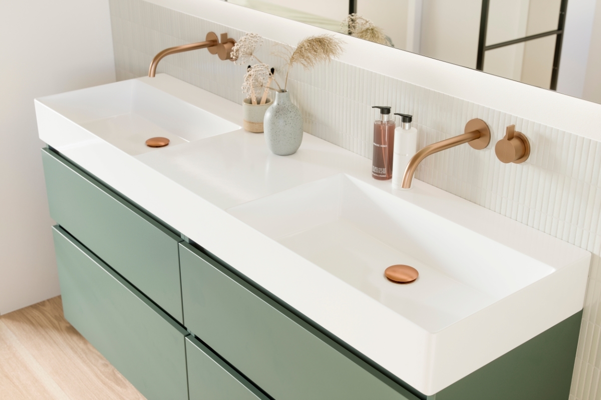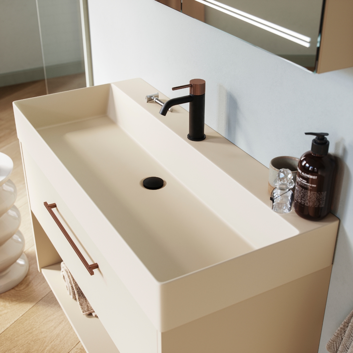 Robuust in 10 kleuren. Het Blend keramische wastafelblad is een lust voor het oog en ook nog eens mogelijk in 10 verschillende kleuren.